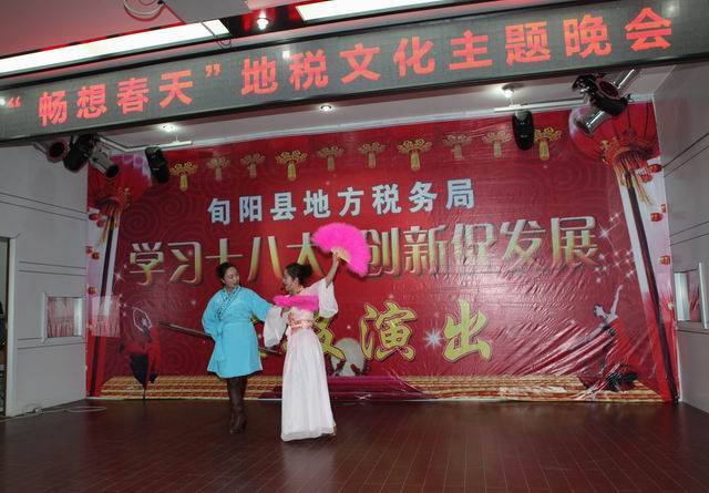 日前,旬阳地税结合全国第22个税收宣传月,举办了一场富有浓郁色彩的“学习十八大,创新促发展”主题文艺晚会。参加演出人员由地税退休老干部和税干及家属组成。节目内容以“学习十八大 创新促发展”和“畅想春天”地税文化为遐想,自编、自导、自演了八个题材新颖、凸现时代气息的文艺节目,展示地税拼搏进取,锐意创新,昂扬向上的精神风貌。