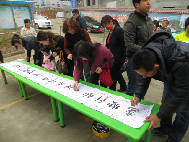 家长联名签字表决心。晨检期间在幼儿园的组织引导下,460名家长及全园教师自觉地融入到“弯腰行动,净化环境,共建美丽旬阳”签名活动中。他们挽袖执笔,尽情挥洒,苍劲有力的签名蕴含了所有人为孩子树立弯腰行动,保护环境的榜样与决心。