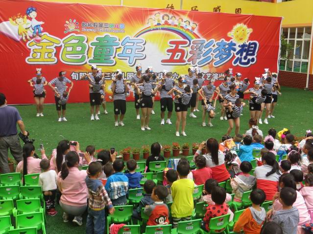 全体师幼及家长共计1000余人参加了此次庆“六•一”活动。《鼠你快乐》、《你最牛》、《现代舞:Boys-B-Flygirls》、《炫酷宝贝》、《亲子操》等17个节目唱响了“金色童年 五彩梦想”的主旋律,整场活动师幼全员参与,以“庆六一 展风采”为经,以提能力、展才艺为纬,既充分体现我参与、我快乐,我展示、我收获的活动宗旨,又在活动中培养了幼儿遵守规则、团结协作的意识,得到家长及社会的一致好评。