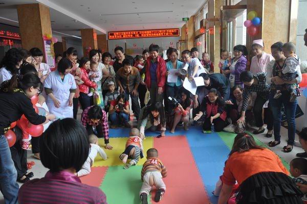 本次按年龄组进行的“婴儿游泳、爬行”比赛项目,都是由儿童保健专家结合孩子们的运动心理和生长发育特点精心策划的。“嘟……”随着裁判的一声哨响,2名婴儿被护士们迅速地放入一字摆开的塑料游泳池内,在众多亲友团的鼓励声中,婴儿们一下水就手舞足蹈地游了起来,只见他们有的“蛙泳”、有的“仰泳”、有的干脆“自由泳”,兴奋地击打着水花……。爬行赛道上的小选手更是萌翻现场,有的往前爬,有的原地不动、有的会走不会爬,不过,大人似乎要比孩子着急许多,比赛哨声一响,助威团可就忙开了,各人根据自家宝贝的性格,想尽办法鼓励他们快爬,呐喊声、助威声,其激烈程度不逊成人运动会。