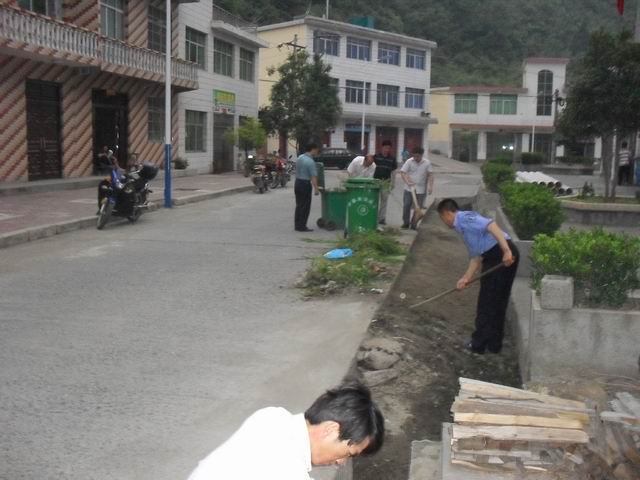 今年以来,该镇在顺利通过市级卫生集镇、园林集镇验收的基础上,进一步巩固双创成果,把集镇环境卫生综合整治作为全镇农村清洁工程突破口,发动全镇力量,组织动员干部、职工、群众大力开展清洁家园、清洁田园和清洁河道活动,着力改善乡村群众生活生产条件。镇政府实行责任包干制,并层层签订环境卫生整治工作目标责任状,进一步明确责任,全面开展整治工作,及时向各住户摊主下发整改通知书,限时限期进行整改,沼气池建设也正有效进行中。各单位领导、干部及相关村委村干部对各自责任辖区进行综合整治,打扫生产生活垃圾、清除道路杂草、疏通排污管道,深入一线,组织发动群众人人动手,开展环境卫生整治活动。并投入5万余元,购买大型垃圾桶25个,张贴宣传彩绘3张,利用宣传车和各种会议广泛宣传开展清洁活动的重要意义,以广泛凝聚群众共识,营造全镇参与环境整治的良好氛围。