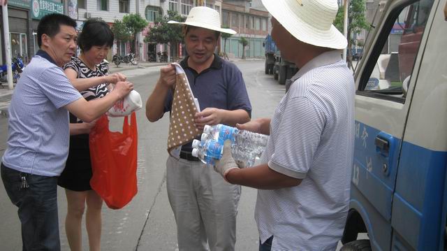 7月11日,双创办给正在维护交通秩序的公安交警城区一中队从事执勤一线的交警和正在为整治市容市貌环境的城管综合执法大队一线员工分别送去矿泉水和慰问金。同时还为170多名日夜奋战在大街小巷清扫保洁的环卫工作者送去遮阳帽、风油精、毛巾、白糖等防暑降温品。