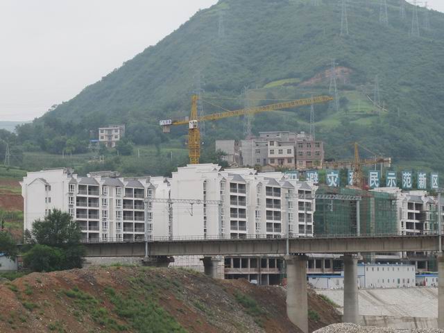张湾移民小区是旬阳县跨区域安置和旬阳县县级避灾扶贫移民搬迁示范工程。该小区规划建设用地189亩,规划建筑面积20万m2,总投资5亿元,其中基础设施投资4000万元,可安置移民1141户5000人,配套建设200延米旬河大桥一座,城市二级干道1.8公里已经全部竣工。截至目前,一期工程已建成住房100套,外墙装饰全部完成,已有搬迁农户开始室内装修,近期即可入住。