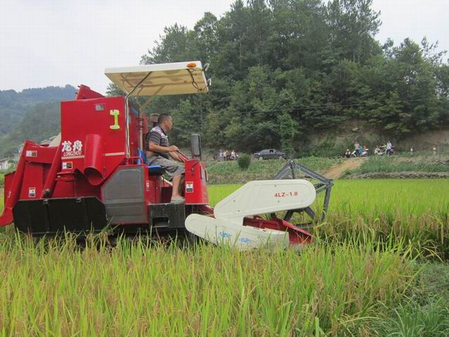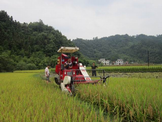 日前,地处陕南山区边关镇铜钱关镇迎来了一台崭新的机械——龙舟牌水稻联合收割机,轰轰的机械开机声引来了许多围观农户,早晨8点开机,8点30分结束,2亩水稻全收入收割机储仓室内,同时水稻秸秆均匀粉碎在稻田里,大大提升了水稻收割效率,节省了人力劳动。