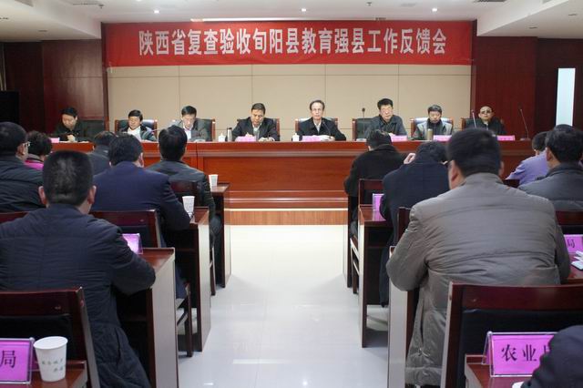 省教育强县评估验收组宣读了《复查验收报告》,宣布旬阳县顺利通过教育强县复验。验收组希望我县继续巩固提高教育强县成果,克服工作中存在的不足,深入践行科学发展观,把旬阳教育的发展水平推进到一个更高的层次,发挥好教育强县的示范引领作用。