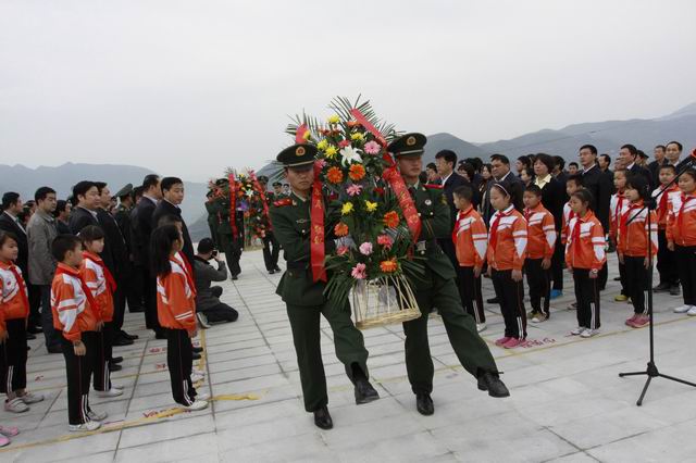 县委书记邹俊杰,市民政局副局长张伟为旬阳烈士陵园纪念碑揭幕。县委书记邹俊杰,县人大常委会主任陈德智,县长张益民,县政协主席王惠,市民政局副局长张伟,县人武部长李朝阳,烈士生前战友代表来西京向烈士纪念碑敬献花篮。全体人员向革命烈士三鞠躬。武警战士明枪向烈士致敬。烈士生前战友代表、少先队员代表献词。