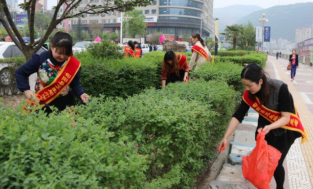 卫生系统的巾帼志愿者一部分走上街头开展义务义诊、健康教育、卫生监督、合疗政策等宣传活动,其余的即刻行动一手持铁钳,一手提上垃圾袋,深入片区钻进卫生死角清理垃圾,为江生态环境综合整治贡献力量。