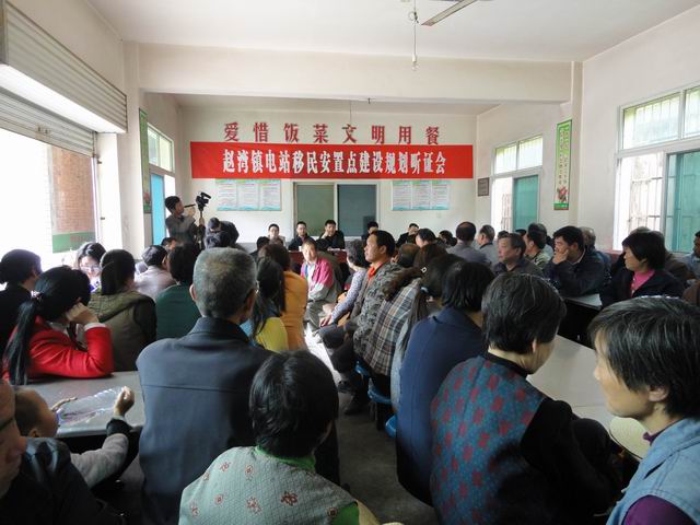 4月17日,赵湾镇电站移民安置点建设规划听证会在赵湾中心校塘兴教学点举行,县移民局、设计院工作人员、镇领导干部和移民户等近百人参加了此次会议。