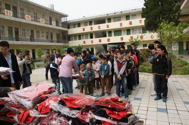 鲁海霖一行先后踏看了校园环境,参观了艺教展室、音乐舞蹈室等功能部室,详细参观、了解孩子们亲手制作的野山核桃制艺、十字绣、剪纸、贴花等艺术品。随后,现场为残疾学生捐赠了亲自募捐的价值7000余元的校服、浴巾和毛巾各50套(条)。在捐赠现场和学生教室,鲁先生饶有兴趣地用手语与残疾孩子亲切交流,并在孩子们的日记本上写到:“我希望你幸福(I wish you all the best)!” 鼓励孩子们热爱生活、积极向上、努力学习,用自己的双手创造美好的生活。