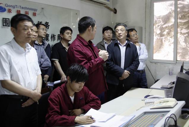 王成文一行先后深入县环保局各股室,环境监测站以及陕西汞锑科技有限公司,详细了解了局机关机构设置、人员配备和监测站各实验室基本职能、工作状况以及企业生产过程、污染治理等情况。