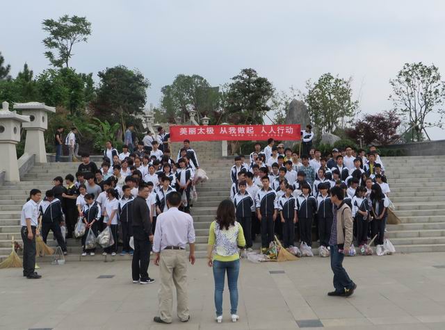 近日,旬阳中学开展“小手拉大手,美丽太极城”活动, 150余名学生走进太极城森林公园,沿途捡拾垃圾,为双创做义务宣传,成为一道靓丽的风景线。