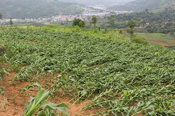 在受灾较为严重的双垭村,大风、冰雹伴随着暴雨将已经开始采收的烟叶打落一地,玉米大面积扶倒。据初步统计,灾害致使全镇1628亩烤烟受损,绝收37亩,农作物受灾1962亩,绝收466亩,企业受灾影响2家,房屋受损74间,通村水泥路毁坏5.7公里,通组砂石路毁坏10.03公里,电力损坏1杆公里,饮水工程设施损坏9处,直接经济损失达872.06万元。