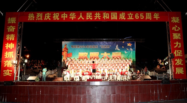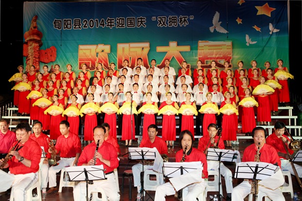29日晚,旬阳县2014年迎国庆“双拥杯”歌咏比赛在紧张的筹备后正式开赛。县委书记邹俊杰,县长张益民等领导和干部职工一起参加比赛活动。