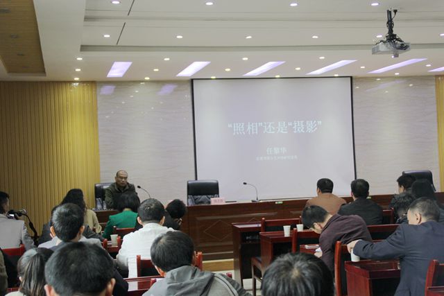 讲座邀请了市文联副主席、市摄影协会主席任黎华为大家授课,任黎华首先从技术技巧、摄影语言和文化思想入手,阐释“照相”与“摄影”的区别;同时,结合自身摄影实践与体会,帮助大家构筑摄影思维框架,找寻生活中的真美所在,并辅以大量实例解读,现场说法,引导大家在名作中鉴赏美感,领悟照片背后的文化艺术灵魂。