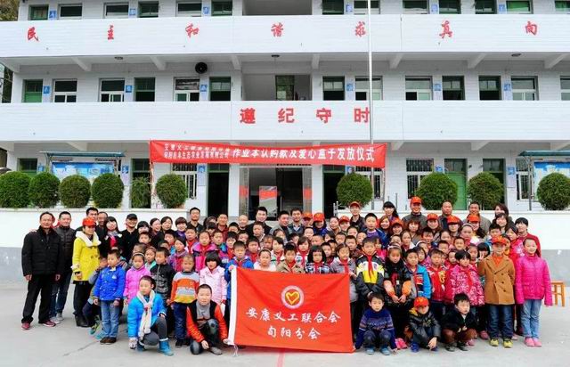 11月16日,安康义工联合会旬阳分会携手旬阳县巨丰生态农业发展有限公司,走进麻坪镇枫树小学,开展作业本计划认购款发放及“爱的礼盒”发放活动。