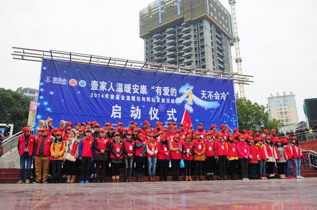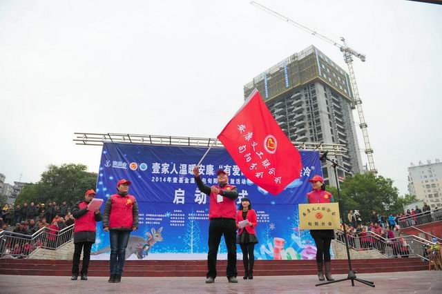 12月14日,安康义工联合会旬阳分会主办的“有爱的冬天不会冷”, 2014壹基金温暖包旬阳站发放仪式暨安康义工联合会旬阳分会挂牌仪式在县城祝尔慷广场举行。