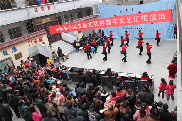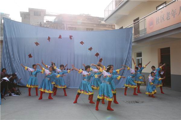 演出在舞蹈《舞动中国》中拉开帷幕,律动欢快的节奏一下子调动起了大家的热情。独唱《故乡情》、《太极城的姑娘》,小合唱《赞太极城》、表演唱《八姐妹喜逛太极城》等自编自演的歌曲,唱出了大家对美丽故乡旬阳的深深热爱之情,表达了他们对旬阳翻天覆地变化的赞美之情。花鼓戏《唱一唱小河北社区长寿乐园》、花鼓独唱等节目,将老人们在小河北社区日间照料中心的幸福惬意的生活表达的淋漓尽致,得到了在场观众的一致认同…….两个小时的精彩表演展现出了社区中老年人的积极向上、乐观健康的精神风貌,赢得了围观群众的阵阵掌声。