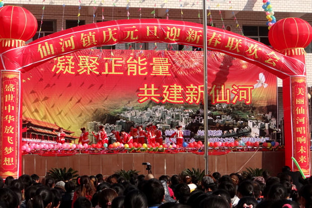 12月30日下午,仙河镇隆重举办“凝聚正能量,共建新仙河”庆元旦迎新春联欢会,镇上领导干部、中小学校师生、辖区各单位负责人及集镇群众1000余人共享了此次“文化盛宴”。