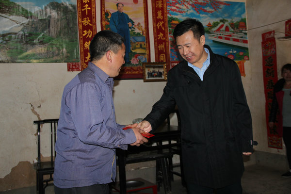 2月17日,农历腊月二十九,市委书记、市人大常委会主任郭青深入我县小河镇金坡村慰问困难群众,为他们送上新春的问候和祝福。市委常委、市委秘书长罗雪剑一同慰问。