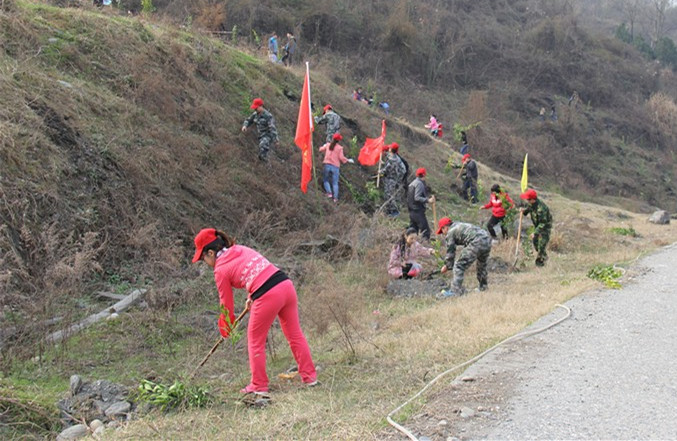 近日,在蜀河的田间地头,活跃着这样一群人,他们带着小红帽,缠着红袖标,忙碌的刨土,浇水,栽植新绿,成了蜀河田间地头美丽的一道风景。