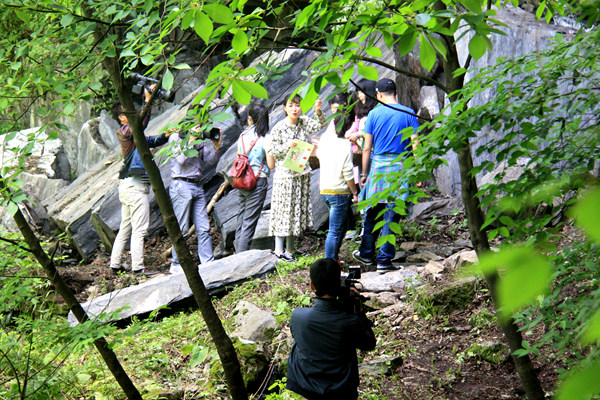 循着悠扬的旬阳民歌《兰草花》,该行人找到了金寨最原生态、又古老的仙花洞。据介绍,仙女洞因仙女为民降雨而得名,此洞现为歪头山景区之一,尚待开发。在看到溶洞内各种千奇百怪的石柱及滴水石时,该行人感叹道:“今天算是没白来,也亲眼见证了‘滴水穿石’”。