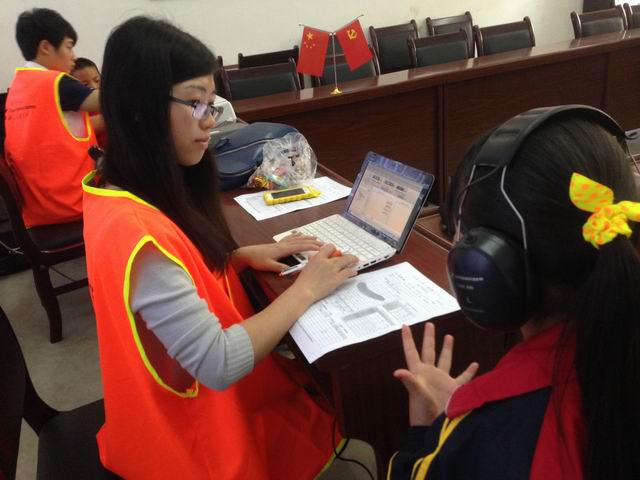 “天籁列车”是由澳大利亚华人魏基成创立的,旨在向贫困听障者和聋哑儿童提供免费的助听器,帮助他们走出无声的世界。旬阳县阳光学校共有学生55名,听障学生20名,黄兆邦先生带领两位听力师耐心细致的为每名学生检查听损情况并验配助听器,演示教学方法,教授舌健操,部分聋儿在指导下第一次听到了声音,无比激动。