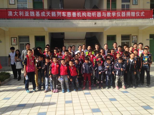 5月11日,魏基成“天籁列车”慈善机构代表黄兆邦先生和两名听力师在省、市、县侨联的陪同下,tbet88通博 县阳光学校,为学校每班捐赠语音教学仪一台,为每名听障儿童捐赠助听器一台,价值近百万元。