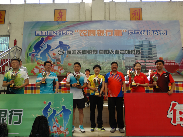 在赛场上,运动员满腔热情的投入比赛,始终充满了紧张、激烈、友好、互助的气氛,表现出了“团结、互助、拼搏、进取”的良好精神风貌。秉承友谊第一,比赛第二的宗旨,各位运动员不仅锻炼了体质,而且切磋了技艺,加强了交流、增进了友谊,达到预期效果。最终,县农村商业银行、旬阳烟厂等6个单位获得团体前六名,王娅妮、潘伟分别获得女子单打和男子单打冠军。
