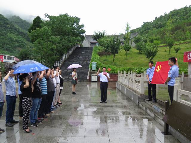 庄严的红军烈士纪念碑,鲜红的党旗,肃立的党员干部……在淅淅沥沥的夏雨中显得格外肃静。6月28日,旬阳县城乡规划管理系统的18名党员干部冒雨颠簸了近三个小时来到红军纪念馆开展庆祝党的94周岁生日 “缅怀革命先烈、重温入党誓词”主题活动,用实际行动表达一名党员干部的爱党情怀。