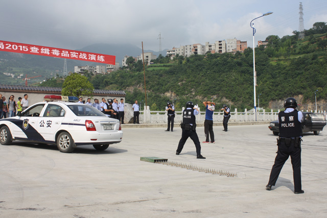 7月23日,县公安局在102省道开展“查缉毒品”实战演练。