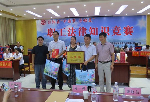 本次知识竞赛活动由旬阳县总工会主办,县依法治县工作领导小组办公室、县人力资源和社会保障局和县妇联协办。共有27支代表队参加,分为预赛、决赛两轮进行,内容涉及《工会法》、《劳动法》、《安全生产法》、《妇女权益保障法》、《工伤保险条例》等法律法规知识,以小组必答题、个人必答题、风险题三种形式进行积分累计。竞赛设置一等奖一名,二等奖三名,三等奖六名。经过两天的激烈角逐,政协机关代表队以230分的成绩获得了二等奖。