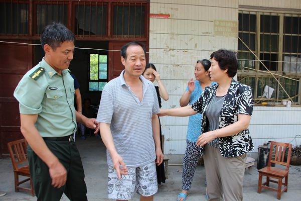 随后,田丽萍又沿着崎岖的山路来到帽顶村三组,看望了现役军官赵广立的父亲赵国军。田丽萍详细询问了他的生活和健康状况,当得知赵国军妻子身体患病,家庭生活困难时,要求随行的镇村领导要尽力帮助解决生产、生活中的实际困难,让赵广立在部队安心服役,为国家立功,为家乡争光。