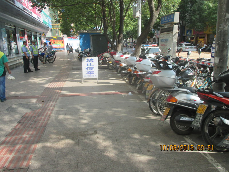 “人行道规范停车”集中整治行动以来,交警大队一中队共计出动警力60余人次,规范抬移摩托车800余辆,拖移摩托车30余辆。制止乱停乱放行为500余次,有效地规范了辖区人行道机动车辆的有序停放。
