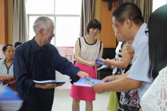 今年80岁的退休教师、家族长者吴义智,致力于家风家教实践探索近20年,在编写旬阳第一部附有孝道文化的家族谱、村志及《桂花乡土情》后,今年又自费出版《家风家教》乡土教材,用养老敬老、教子有方、凡人轶事、“五爱”最美家庭、“全家福”照片等七个专篇,提升敬老孝亲、科学教子的意识,号召广大党员干部群众,用文明礼仪书写社会新风尚。活动现场,吴老将自编教材亲手赠送给每一位参会成员。吴老兴致颇高地说:“家教,就是勤劳节俭,诚信待人,仁者寿,奉献者乐,我们的父辈,虽然文化程度不高,但是特别重视我们这代人的文化学习,生活细节方面,一俭一节,待人接物,都要讲礼貌,要勤俭持家,全面发展”。