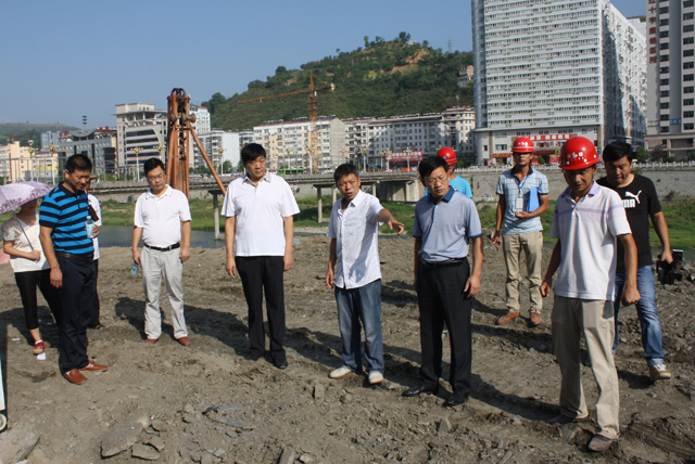 8月15日,副县长夏锡宝带领县政府办、水利局、住建局、规划局和城关镇等单位负责人实地检查汉江综合整治县城防洪工程建设情况。