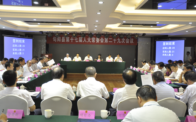 8月18日,旬阳县十七届人大常委会举行第二十九次会议,县人大常委会主任陈德智主持会议,副主任熊生明、华开锋、杨纪元、周广清及16名常委会委员出席。县委副书记、县政协主席田丽萍出席会议。