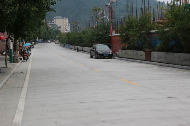 洞口至城关一幼全长890米,宽10米,由于原道路路面狭窄,损毁严重,给周边居民生活、出行带来极大不便,尤其是该片区学校集中,中、小学及幼儿园学生众多,上下学拥挤不堪,按照旬阳县委、县政府工作部署,县住建局于今年7月11日启动实施了道路改造工程,投资550万元,包括路面拓宽改造及铺设、强弱电入地、排水管网铺设、人行道铺装等建设内容,历时44天全面完成整条道路铺设工作,实现了2015年9月学校开学前主体完工通车的目标。
