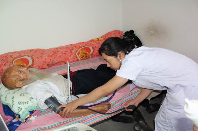 9月8日至9日,县医院组织医务人员先后来到城关、关口等地为朱德道、薛居启、李正宏、邹顺邦等抗战老兵上门做体检,为他们测血压、做心电图、B超等检查,嘱咐他们平时生活起居应该注意的事项。