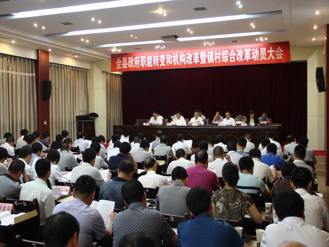 9月16日,我县召开政府职能转变和机构改革暨镇村综合改革动员大会,标志着我县政府职能转变、机构改革和镇村综合改革工作全面启动。县委书记梁涛,县人大常委会主任陈德智,县委副书记、县政协主席田丽萍等领导出席会议,县长陈红星主持会议。