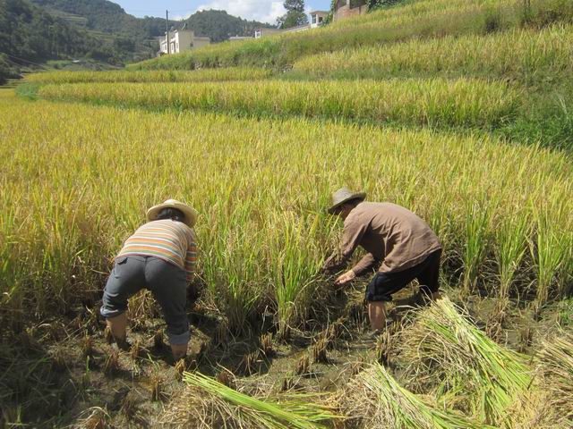 旬阳县石门镇被誉为“贡米之乡”,就是因为石门镇王家坪村二组的几块秧田水温冬暖夏凉,所种稻米成熟较早,所产大米晶莹剔透、做出的米饭松软可口,传说被明清皇家选为贡米而得名。王家坪村二组400余亩连片秧田自然成了石门贡米基地了。贡米熟了,微风掠过站在村口眺望,只见金浪翻滚,一眼望不到头,走近细看,黄灿灿的谷穗压完了腰,预示着一年丰收的喜悦。
