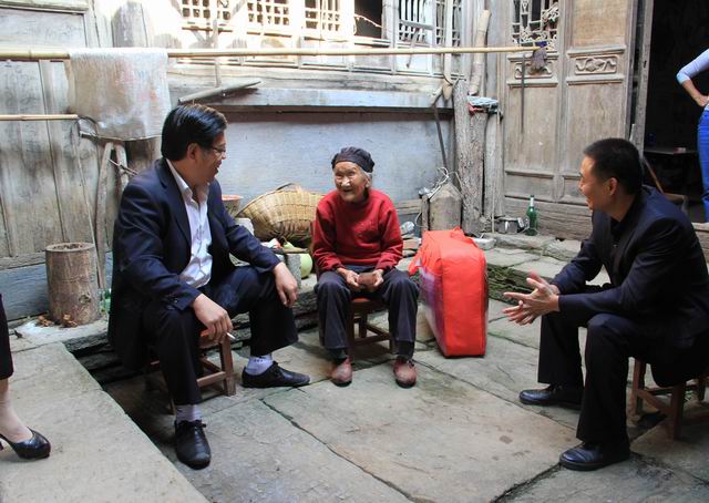 “独在异乡为异客,每逢佳节倍思亲”,又是一年重阳佳节,为使老人们幸福安详地度过佳节,在县政协的带领下,协同县老龄办、赵湾镇一同前往各村的高龄贫困老人家中送去慰问品和慰问金,并为他们送去节日的祝福。尤其是一些留守老人,他们长年没有亲人的陪伴,缺少关爱,于是,为解老人们的思亲之情,领导干部及政协委员们走进老人家中,坐在老人身边亲切地与他们拉家常。