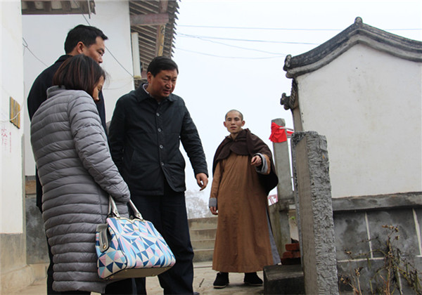 11月26日,县委常委统战部长曾炜带领县民政局局长深入小河镇调研民族宗教工作,宣布了市民族宗教事务局关于同意设立慈圣寺为固定宗教活动处所的批复。
