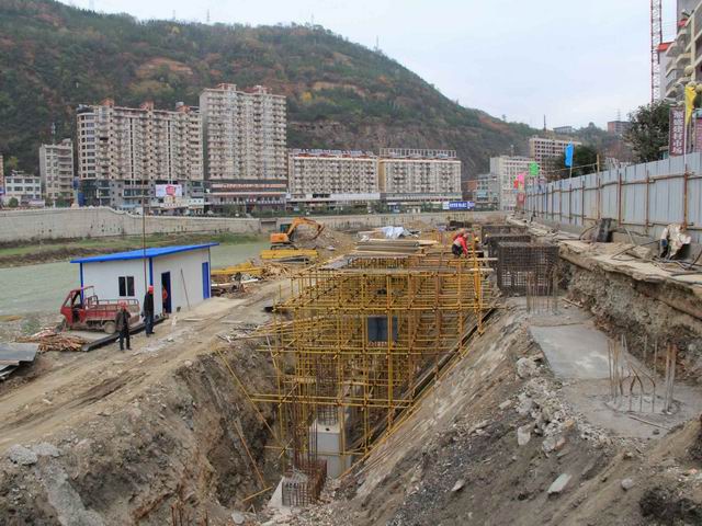在县城防洪堤建设工地和旬河廊桥项目建设工地,工人正冒着凛冽的寒风搭建脚手架。县城防洪堤工程开工建设以来,项目主管单位县水利局倒排工期,制定科学合理的进度计划,实行定期定桩管理,从早上六点到晚上十点进行交叉施工,目前已完成形象进度2.0亿元。旬河廊桥项目集交通、商贸、景观等功能于一体,是旬阳县实施的又一地标性建筑,目前已完成4个桥墩浇筑施工,正进入桥墩间拱圈浇筑工作,完成投资5000余万元,配套设施连接线工程也已正式动工,2016年5月即可竣工,项目建设已步入快速实施阶段。
