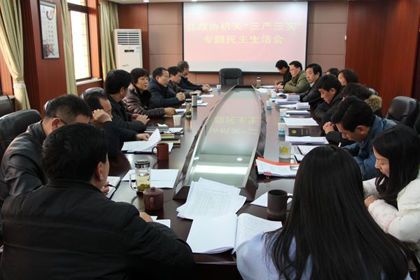 12月27日下午,县政协机关召开“三严三实”专题民主生活会和组织生活会。县政协党组书记、主席田丽萍主持会议,县政协副主席王成书、朱远胜、向敏毅参加会议。