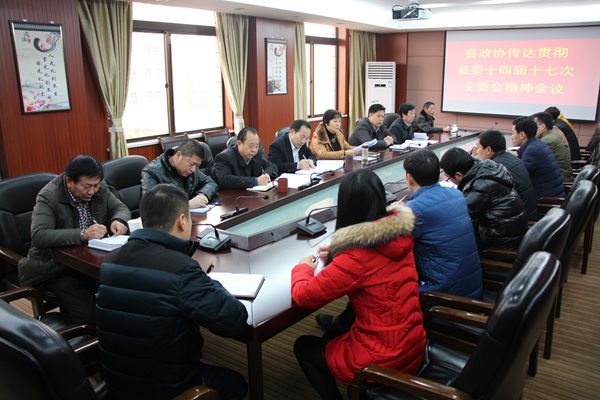 会议指出,县委十四届十七次全会是我县承上启下、经济社会发展转折时期召开的一次重要会议,对于实现“十三五”良好开局、加快推动经济社会发展转型升级意义重大、影响深远。全县各级政协组织要把学习贯彻县委十四届十七次全会精神作为一项重大政治任务来抓,切实把思想行动统一到县委县政府决策部署上来,以县委十四届十七次全会精神为指导,开好政协会议,推进政协工作。