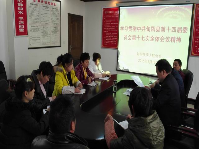 1月15日,县残联先后召开党组会议和全体干部职工会,全面传达学习贯彻县委十四届十七次全委会议精神,紧扣“十三五”全县经济社会发展基本思路和2016年重点工作任务,找准着力点、选准突破口,精细谋划全县残疾人事业发展之策。一是要求全体干部职工认真学习梁书记和陈县长在全委会上的讲话原文,深刻领会精神内涵,结合残疾人脱贫奔小康战略和自身思想、工作实际,撰写心得体会。二是围绕“创一流、树品牌、出成效”总目标,确定年度重点工作指标任务并细化分解。重新发文调整班子分工并明确干部工作职责,确保全员抓落实,全面提效能。三是认真做好残疾人精准扶贫建档立卡“回头看”核查和数据衔接工作,确保贫困残疾人全部纳入扶贫系统。制定完善全县残疾人脱贫攻坚工作方案,整合扶残助残项目资金,为推进残疾人脱贫攻坚精准施策奠定基础。四是尽快启动残疾人托养中心新建项目征地、规划、设计等前期工作,为顺利推进项目建设创造良好的内外环境,确保如期完成项目投资计划,不断健全残疾人服务体系。五是确定2016年为“全县残疾人基层组织建设年”,通过不断加大县、镇、村残疾人服务管理机构阵地建设和残疾人工作队伍能力建设,统筹推进残疾人康复、就业、教育、扶贫和社会保障工作提质增效。六是做好春节期间贫困残疾人走访慰问工作,有效解决困难残疾群众生活中的急难问题,把党和政府的温暖送到贫困残疾人家中,让贫困残疾人度过欢乐祥和的节日。