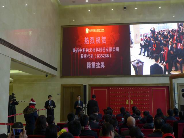 1月22日,陕西中科纳米材料股份有限公司在全国中小企业股份转让系统成功举行集体挂牌仪式,标志着该公司在“新三板”正式挂牌上市,成为旬阳县乃至全市首家在“新三板”挂牌的企业,为旬阳中小企业进入多层次资本市场开启了新征程。