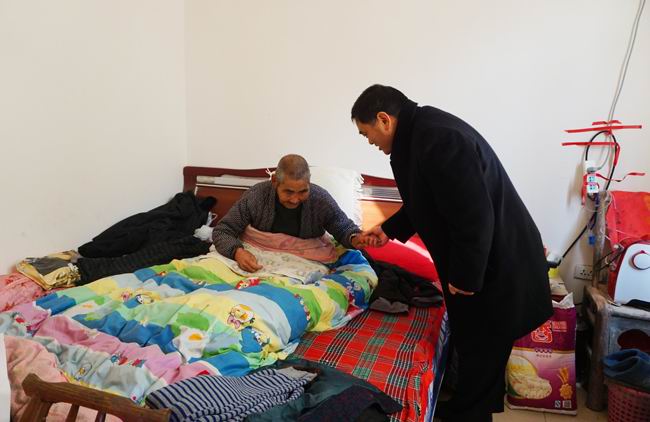 1月29日,县人大常委会主任陈德智在城关镇慰问贫困党员、贫困户、优抚对象,为他们送去慰问物资和新春祝福。