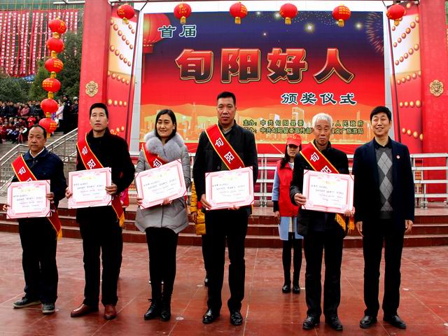 活动现场还分别授予杨荣耀、潘德成、马新等19名同志为敬业奉献类“旬阳好人”、孝老爱亲类“旬阳好人”和助人为乐类“旬阳好人”。据悉,县委宣传部、县文明办从2015年7月份开始在全县范围内竖起了“旬阳好人”大旗,并精心组织评选活动,经过层层推荐、审核、公示和评委会评审、综合评定等程序评定人选,再由县委宣传部、县文明办、县总工会、县妇联会、共青团旬阳县委联合授予“旬阳好人”荣誉称号。引导群众见贤思齐、崇德向善,做社会主义核心价值体系建设的实践者和推动者,推进公民道德建设和社会主义精神文明建设深入发展,为“六大转型升级”、“五大突破”发展思路和“五大硬仗”目标的顺利实现提供强大精神动力和有力道德支撑,同时号召全县人民齐心协力将“扬正气 树新风”道德建设活动推向深入,共建美丽富裕新旬阳。