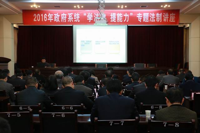 2月26日,旬阳县举行了政府系统“学法律、提能力”第一期专题讲座。县委常委、副县长王武臣,副县长李萍、王拥军、吴志宏出席并聆听了讲座。